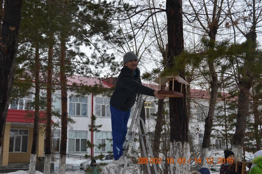 14 декабря состоялось торжественное открытие «Птичьей столовой». Все ребята со своими кормушками вышли на улицу и развешали их на деревьях школьного двора.