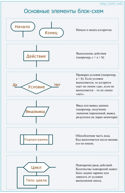 Основные элементы блок-схемы
