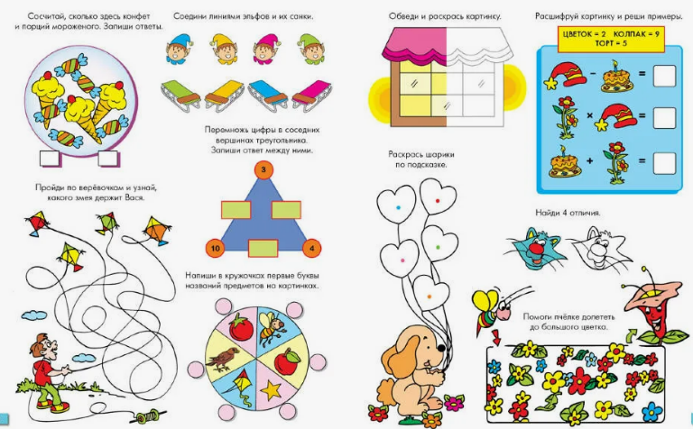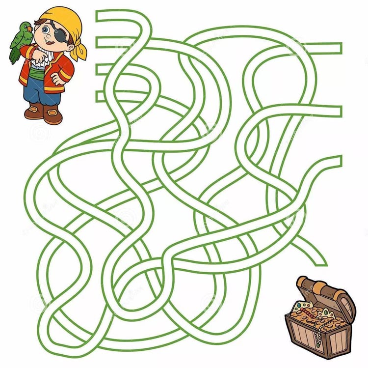 Потом задания усложняются, в лабиринте появляется дополнительная дорожка-веревочка, на которой появляется препятствие. Например, помоги мышонку найти маму, не попав в лапы кошки. Затем переходим к лабиринтам-дорожкам, где появляется множество вариантов прохождения от входа до выхода. Ребенок учится ориентироваться в пространстве, обобщать и анализировать, развивает интеллектуальные способности, контролирует свои действия.