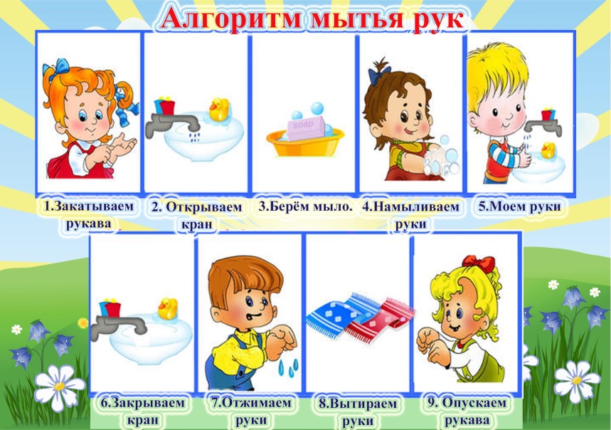Целенаправленную работу по формированию алгоритмических умений начинаем со средней группы. В своей практике с детьми мы используем линейные алгоритмы. Это алгоритмы, в которых все действия выполняются однократно, последовательно, в заданном порядке. Например, алгоритм мытья рук: