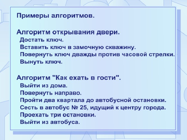 Алгоритмы используются на всех предметах.