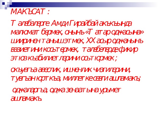 МБОУ «Кольчугинская школа №2» АМДИ ГИРАЙБАЙ. «ТАТАР ОДЖАСЫНА» 6 сыныф