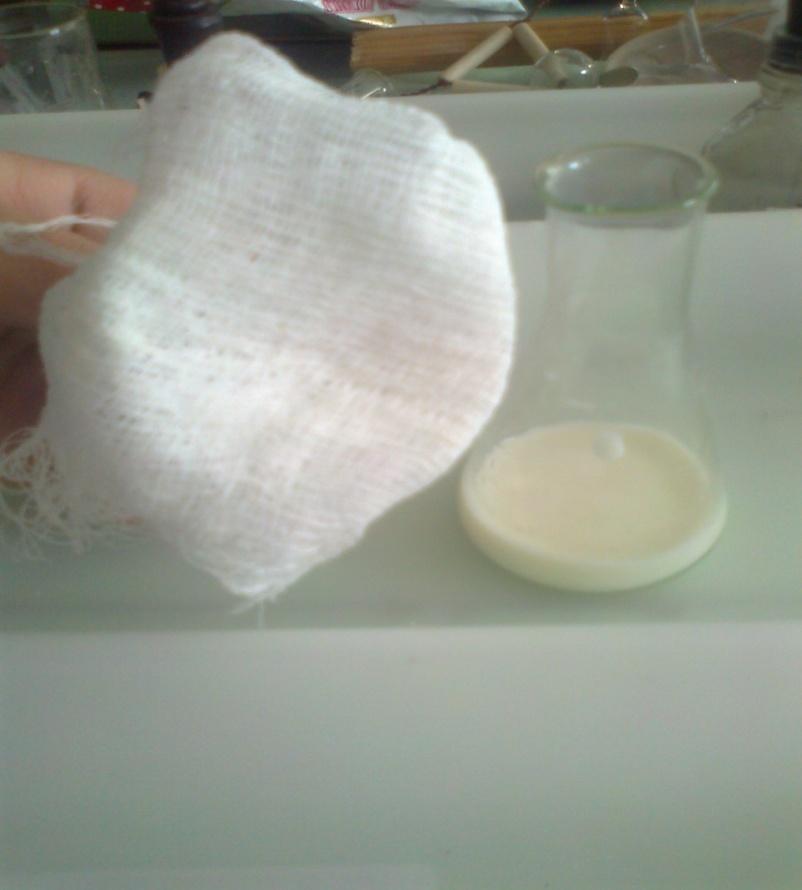 В небольшие колбы наливают 2,5 мл различного молока и 5 мл дистиллированной воды, перемешивают содержимое колб и добавляют по каплям 1 мл 3 % - ного раствора уксусной кислоты. Затем опять хорошо перемешивают содержимое и составляют стоять на 5 - 10 мин. Выпавший осадок (казеиноген и жиры) отфильтровывают, а фильтрат разливают по пробиркам и используют в следующих опытах (Приложение 5).