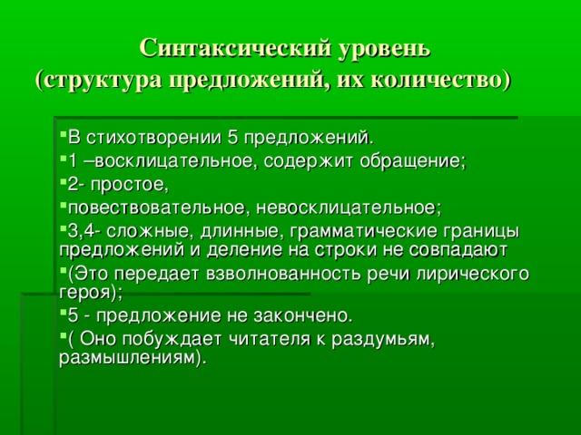 Лексический уровень (значения слов, определяющих эмоциональный настрой стихотворения)