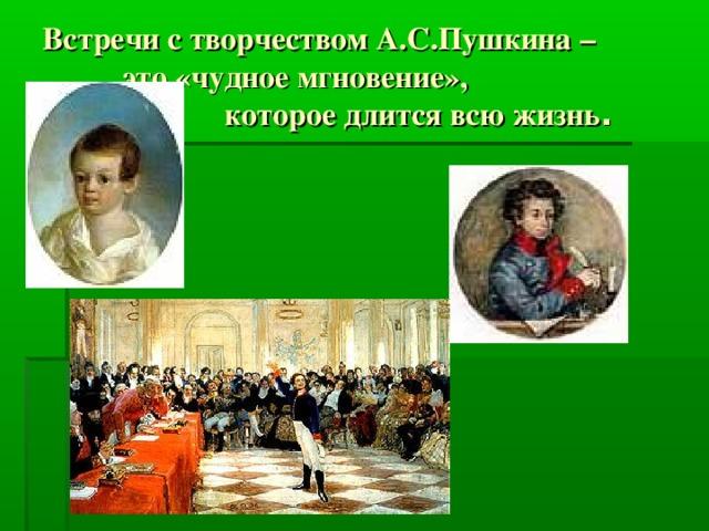 Встречи с творчеством А.С.Пушкина – это «чудное мгновение», которое длится всю жизнь .