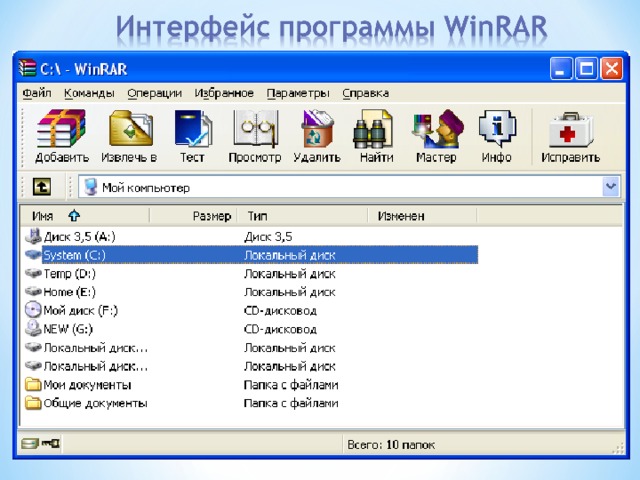 Компьютерные программы, осуществляющие сжатие файлов с целью освобождения места на носителях, называют архиваторами . (Кроме упаковки архиваторы выполняют и распаковку файлов.)