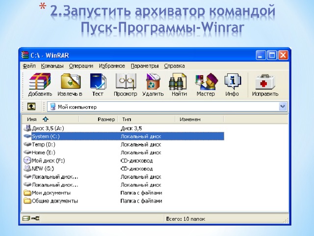 - Познакомиться с п рограммами архиваторами. Научиться создавать различные типы архивов и распаковывать их.