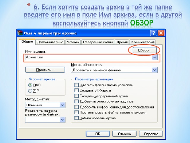 - Для однотипных файлов лучше создать непрерывный архив (SOLID) , так как он обладает свойством наибольшей степени сжатия, но при этом нужно помнить: если какой нибудь файл в таком архиве будет поврежден, то весь архив не возможно будет открыть. Чтобы избежать этого необходим о при создании архива установить флажок добавить информацию для восстановления.