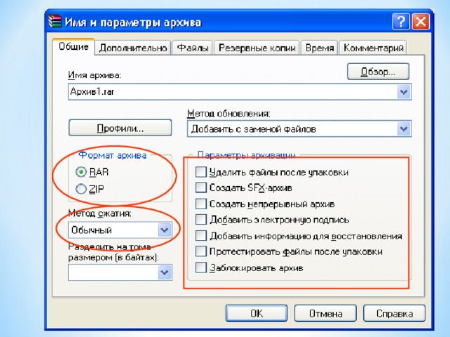 - другие дополнительные функции, например: шифрование, добавление архивных комментариев, ведение протокола ошибок и пр.
