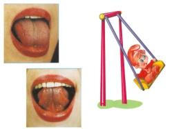 «Маляр» Улыбнуться, открыть рот. Широким кончиком языка погладить нёбо от зубов к горлу. Нижняя челюсть при этом не должна двигаться.