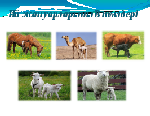 | Балалар қандай үй жануарларын білесіңдер? Кім қандай үй жануарларын жақсы көреді ? Ишара Сұрақ-жауап, сөздерді аудару,сөз тіркестерін құрастыру. Суретпен жұмыс | ||||
