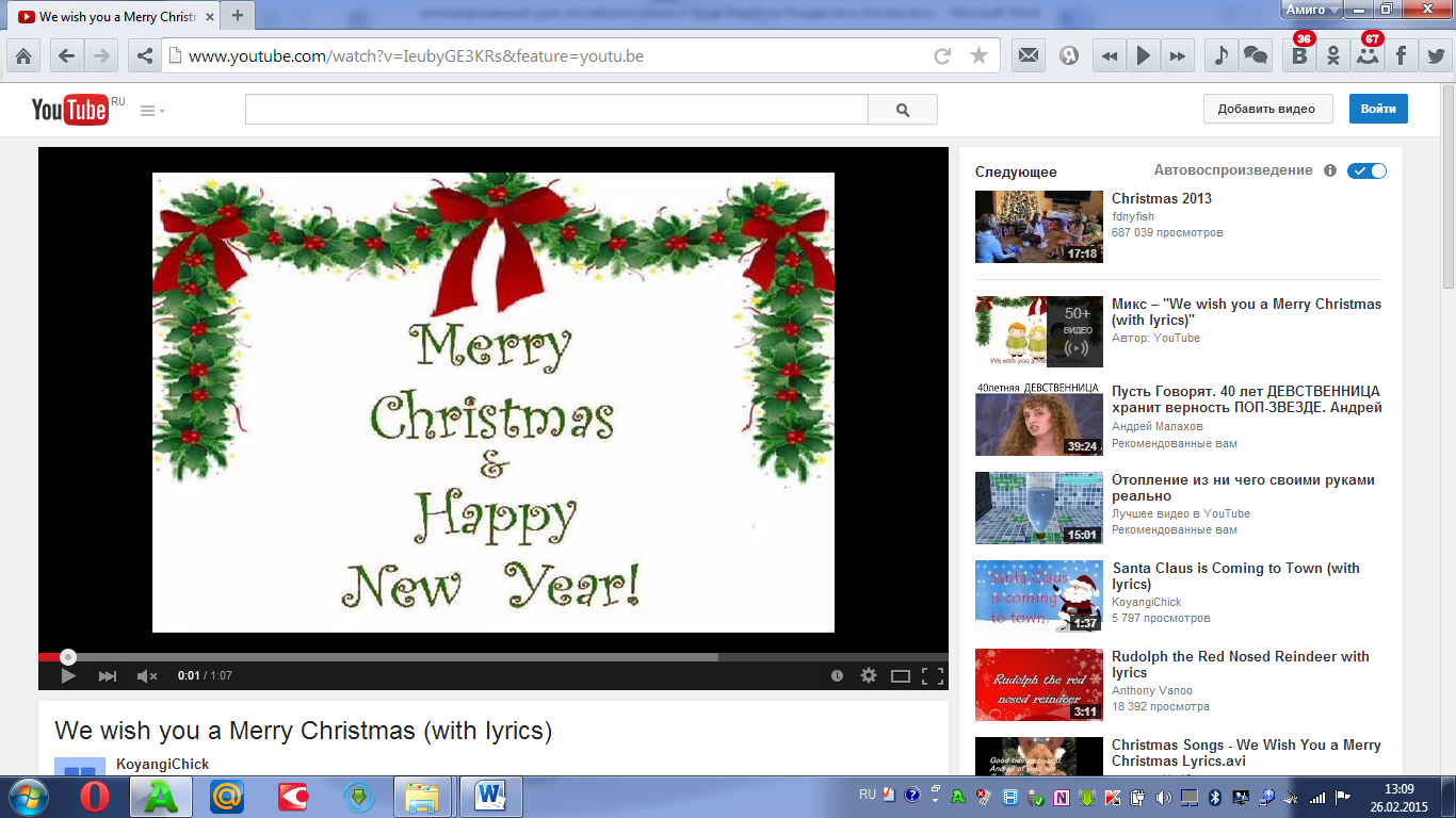 Пение припева песни «We wish you a Merry Christmas» (Приложение № 1)