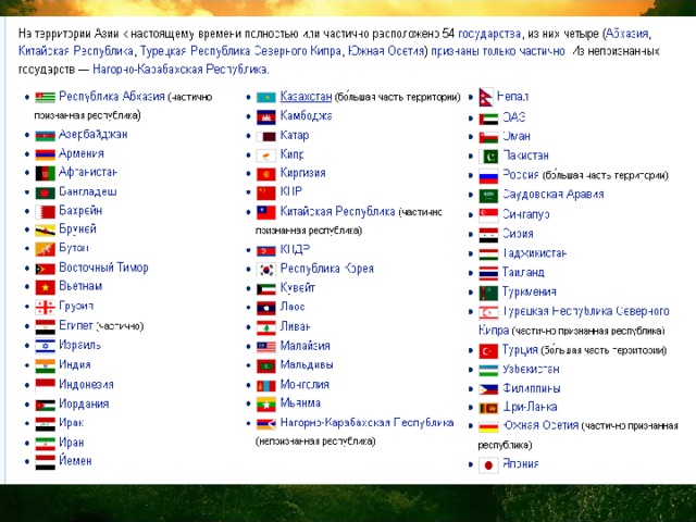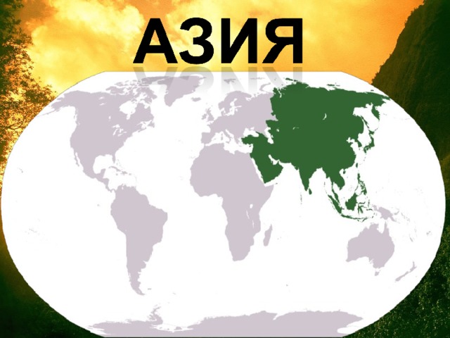 Азия — самая большая часть света, образует вместе с Европой материк Евразию. Площадь — около 43,4 млн км².