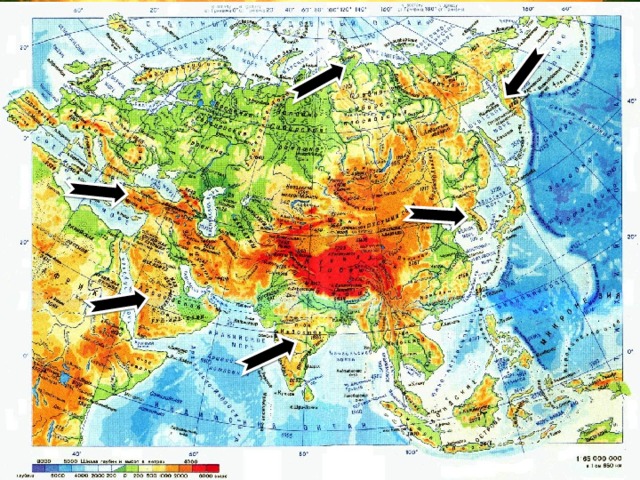 В основании Азии лежат четыре огромных платформы — Аравийская, Индийская, Китайская и Сибирская .