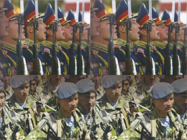 астындағы мыңдаған қарапайым жауынгерлермен бірге жүріп,