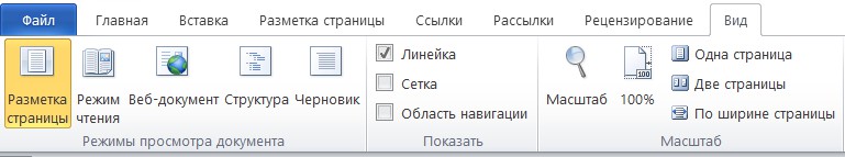 Рисунок 1.4 – Вкладка «Вид». Режим просмотра документа
