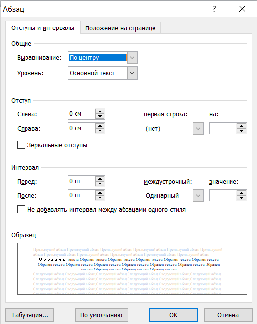Рисунок 1.14 – Окно «Абзац». Вкладка «Отступы и интервалы»