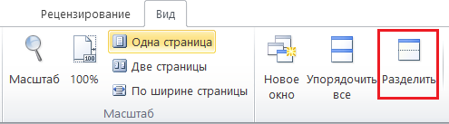 Рисунок 1.5 – Вкладка «Вид», группа «Масштаб», команда «Разделить»