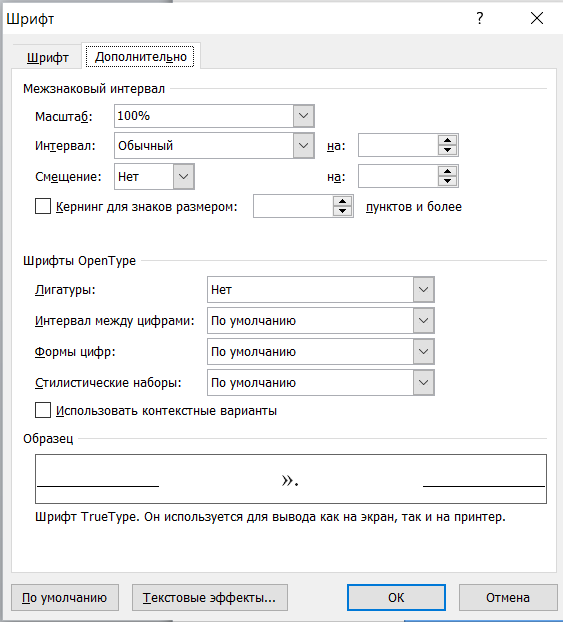 Рисунок 1.12 – Окно «Шрифт». Вкладка «Дополнительно»
