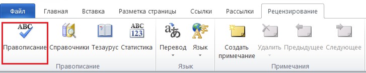 Рисунок 1.8 – Вкладка «Рецензирование». Группа «Правописание»