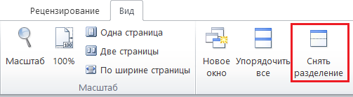 Рисунок 1.6 – Вкладка «Вид», команда «Снять разделение»