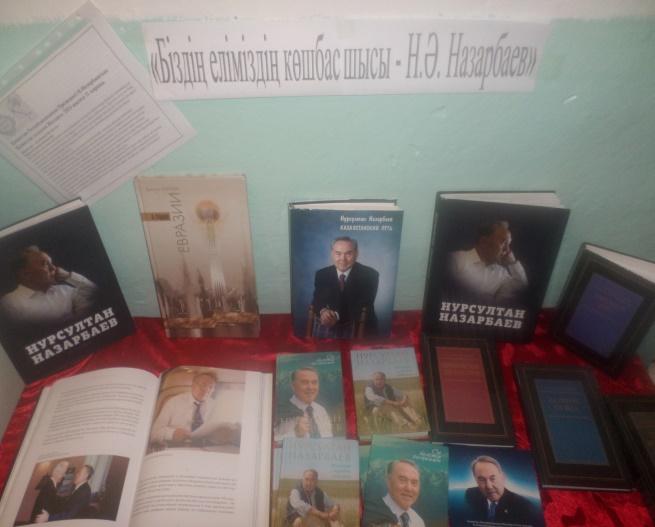 1желтоқсан президент күніне орай "Мемлекет басшысы Н.Ә.Назарбаев" атты көрмеге Н.Ә.Назарбаевтың кітаптары,суреттері, кітаптарда жазылған мақалалар қойылды. Мақсаты; тұңғыш президентіміз Н.А. Назарбаевтың өмір жолы мен қызметі,ел басқару ісіндегі еңбегі жайлы айтылды.