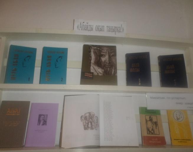 Қараша айында 5-8 сыныптар арасында Абай Құнанбаевқа арнап, реферат және «Абайды оқып, таңырқа» көрме жасалды.