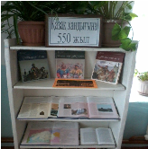 XV-XVI ғасырлар аралығында қанат жайған,тәуелсіз ұлттық мемлекеті-қазақ хандығының 550 жылдығына арналған кітап көрмесі ұйымдастырылды. «Қазақ хандығына-550 жыл» атты көрмеде қазақ тайпаларының басын қосуға,қазақтың этникалық территориясын біріктіруге қазақ хандығына қатысты мол мәлімет беретін басылымдар жинақталды.