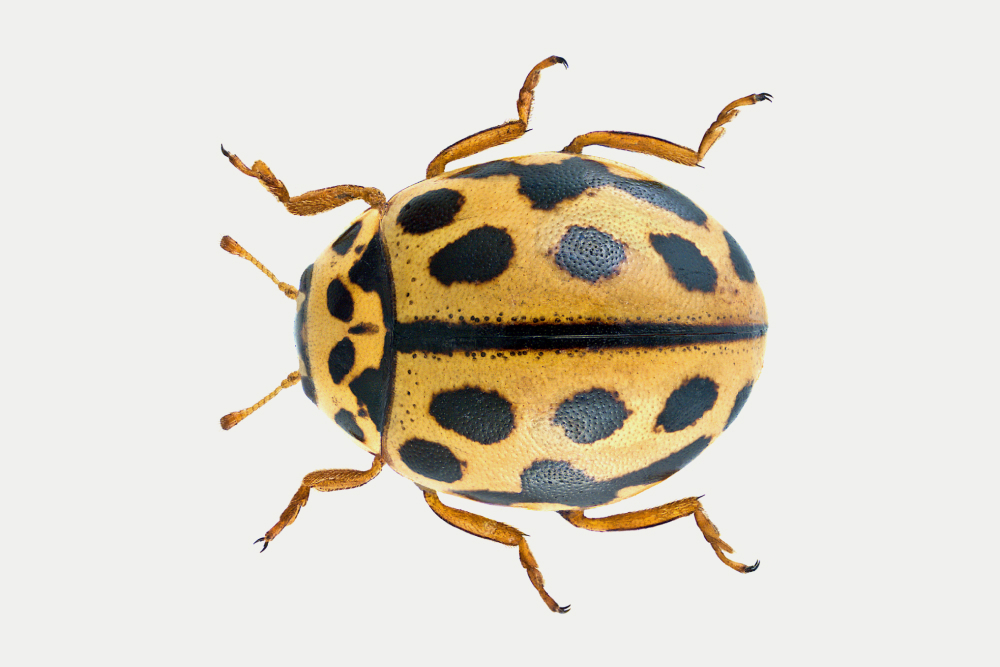 Представители семейства божьих коровок бывают самых разных оттенков: от пепельно-серого до тускло-коричневого и металлического синего. Их узоры тоже различаются — у некоторых есть полосы, у некоторых есть закорючки, а у некоторых вообще нет рисунка. Среди пятнистых божьих коровок количество пятен варьируется. С другой стороны, у желтой двадцатидвухточечной божьей коровки их (не поверите) 22. А некоторые божьи коровки просто любят все усложнять. Божья коровка арлекин может быть желтой, красной, черной и почти любой цветовой комбинации, и у нее любое количество пятен, от нуля до 22.