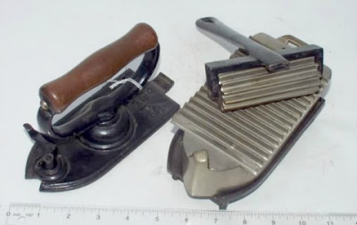 На Руси до появления утюга ткань разглаживали также сковородой, нагретой на горячих углях или рубелем – приспособлением из рифленой деревянной доски и скалки. Вещь, которую необходимо было погладить, наматывали на скалку и катали по ней доску.