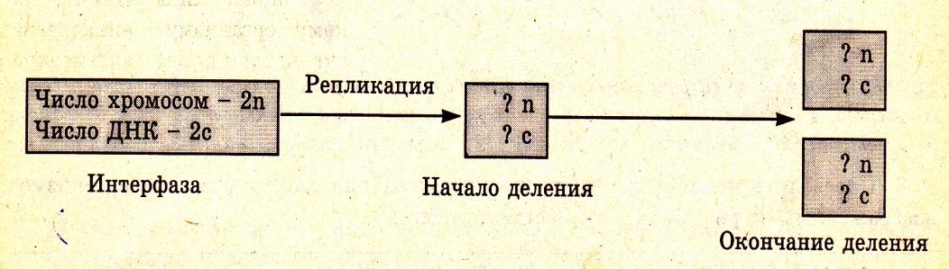 а) назовите фазы митоза, обозначенные на рис. цифрами 1-7. 2. Из скольких молекул ДНК состоят метафазные хромосомы? 3.В чем смысл удвоения ДНК? 4.Какие хромосомы называют гомологичными? Задание 2: определите хромосомный набор клетки и число молекул ДНК в начале деления и в конце. Вместо ? впишите число n и c.
