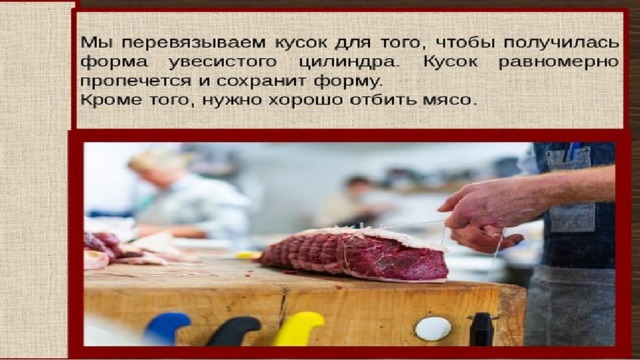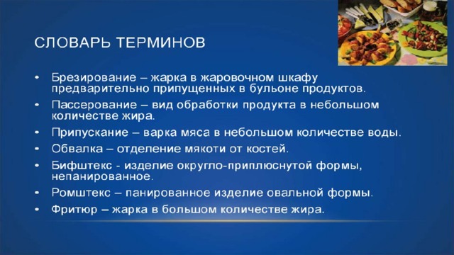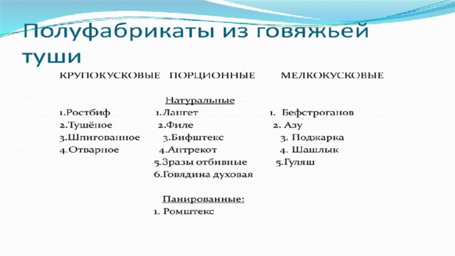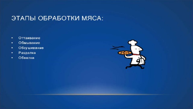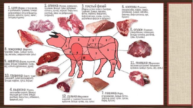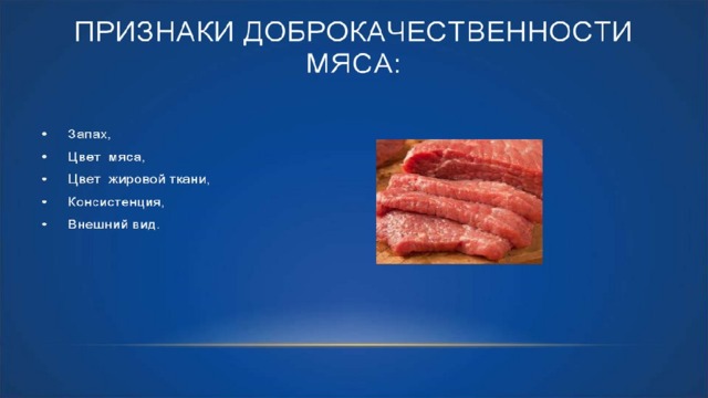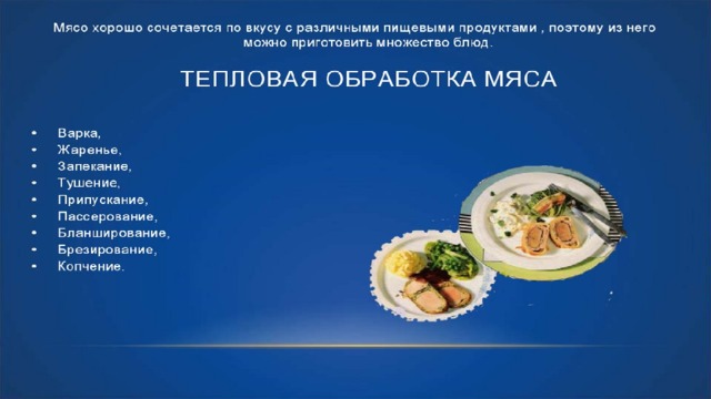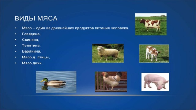 Тема урока: Готовит блюда из мяса, гарниры и соусы к ним. Цель урока: Ознакомиться с видами мяса и его пищевой ценностью, со способами обработки мяса и ассортиментом мясных блюд.