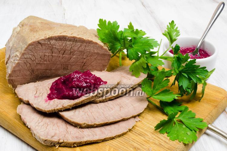 Отварное мясо гарнируют и поливают соусом. Говядину и свинину отпускают с соусом красным основным , луковым и сметанным с хреном. Телятину и баранину подают с соусом паровым и белым с яйцом.