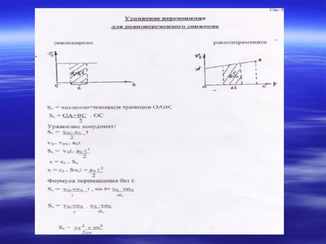- 7. Запишите формулы перемещения при равномерном движении, постройте график перемещения при равномерном движении.