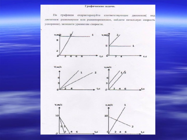 - Сформировать умения решать графические задачи на определение кинематических величин при равномерном и равнопеременном прямолинейном движении;
