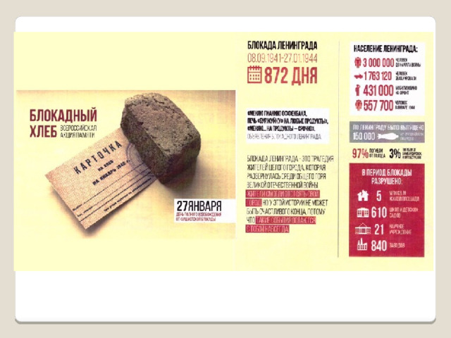 - В Музее истории Ленинграда (Санкт-Петербурга) хранится чёрствый, потемневший не от времени, а тёмный с самого своего появления на свет ломоть хлеба. И сухарём-то его не назовёшь, хоть и высох кусок. Обычный хлеб не так сохнет и не так черствеет.