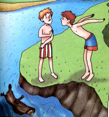 е ныряй, не прыгай в воду в незнакомом тебе месте, так как под водой могут быть посторонние предметы.