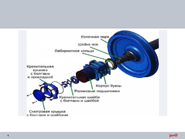 Буксы предназначены для передачи нагрузки от тележки или рамы кузова вагона на шейку оси, а также для ограничения продольного и поперечного перемещения колесной пары при движении вагона.