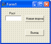 - Ввести на форме Form1 Рост, нажать на кнопку «Новая форма», на форме Form2 нажать на кнопку «Результат». Посмотреть на полученный результат, нажать на кнопку «Закрыть». Форма Form2 закроется, на форме Form1 нажать на кнопку «Выход».