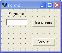 - Изменить свойства Caption в элементах Button1 и Button2 на «Выполнить» и «Закрыть» соответственно