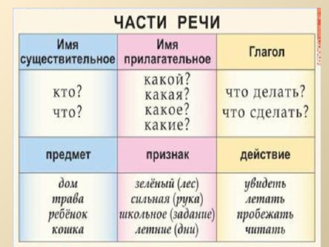 Части речи.