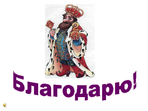 Встали все. 6 – столько раз мы наклонимся сейчас. Мы присядем ровно столько - 4 А подпрыгнем столько – 3 Ай да счет, игра и только. Тихонько сели. Назовите предметы, которые вам подарил Король. Это подсказка. Возьмите лист на столе. План дороги: Какая дорожка приведет к замку Короля, если по дороге домой он видит ягоду, яблоко, лимон, шарик. Давайте проговорим шепотом: ягода, яблоко, лимон, шарик. Раскрасьте эту дорожку красным цветом. Взяли карандаш, приступили к работе. Под каким номером замок Короля? Найдите эту цифру в волшебном мешочке среди других цифр и предметов и покажите мне. Появляется Король Считай Второй под музыку фанфар.