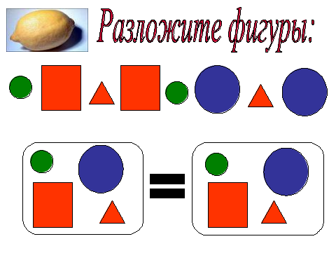3 группа – Разложи фигуры в мешочки так, чтобы получились одинаковые наборы.