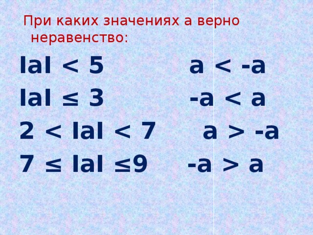 При каких значениях a верно неравенство: