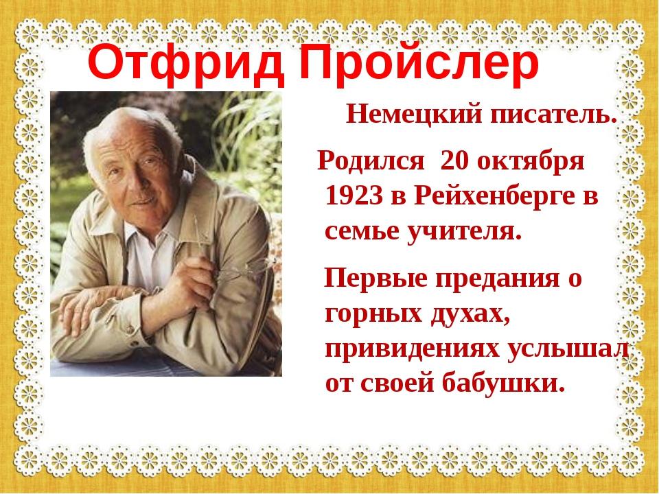 1.Прочитай наиболее известные произведения немецкого писателя О. Пройслера: «Маленькая Баба-Яга», «Маленькое Привидение», «Маленький Водяной».