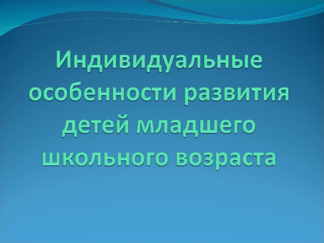 1. Индивидуальные особенности развития детей младшего школьного возраста