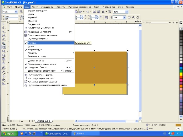 Цветовая палитра по умолчанию расположена вдоль правого края окна приложения. При подведении курсора к образцу цвета отображается имя цвета. При выборе данного образца цвета цвет фона прямоугольника изменится на выбранный.