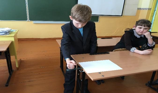 1.Положить линейку на стол таким образом, чтобы треть её выступала за край стола.