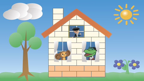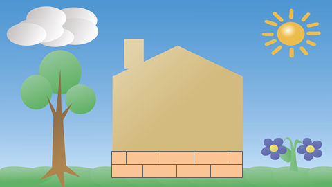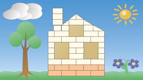 Смотрите, в нашем доме появляются окошки и закладываются стены.