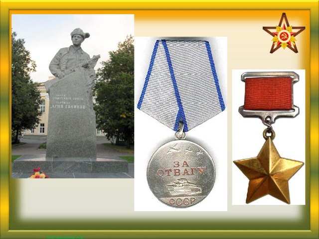 Слайд 20 Награжден медалью «За отвагу» и посмертно присвоено звание «Героя советского союза»